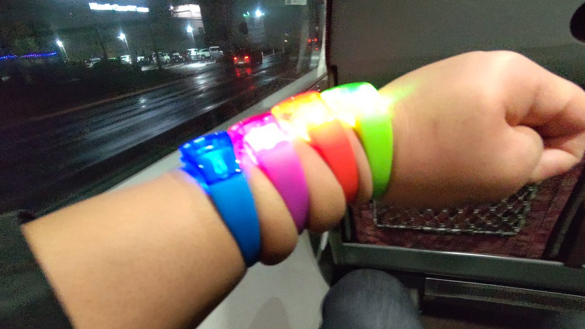 ペンライト持ってると手拍子がしづらいし俺みたいに気の多い人間はまず複数本持つのも辛い ってことで光る腕輪ですよ バンドが肉に食い込みます痛え pic.x.com/MtPePEuVFy x.com/kirari_yumeno/…